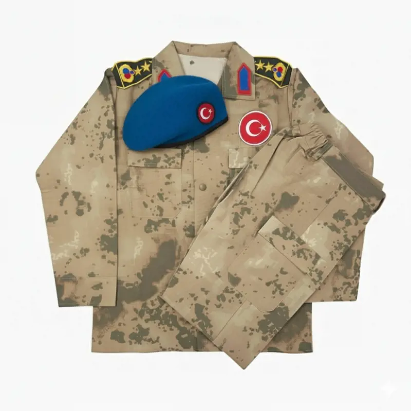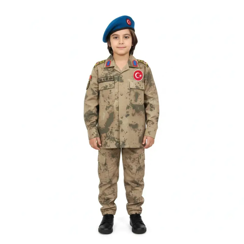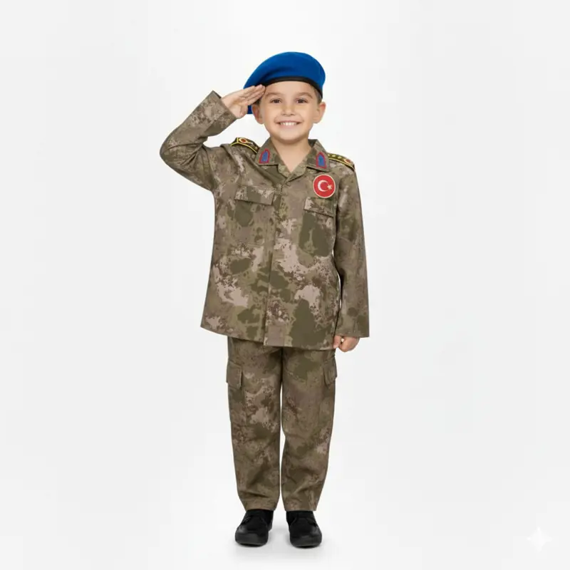 Küçük kahramanlar için özel olarak tasarlanan bu gerçeğe yakın askeri kostüm, çocukların hayallerini gerçeğe dönüştürüyor! Hem kara kuvvetleri hem de jandarma konseptine uygun olarak hazırlanan bu set, canlı ve detaylı tasarımıyla dikkat çekiyor.