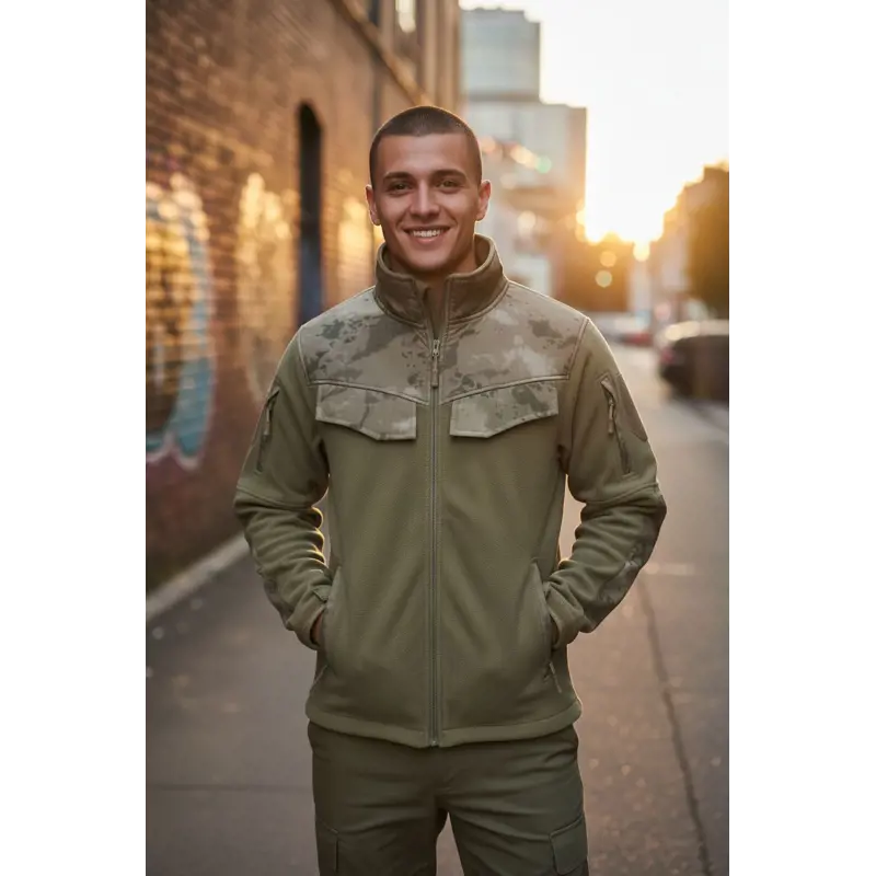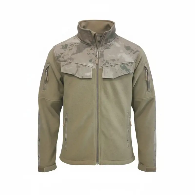 Omuz ve göğüs bölgesinde yer alan modern dijital kamuflaj deseni ile estetik ve fonksiyonel bir görünüm sunar.