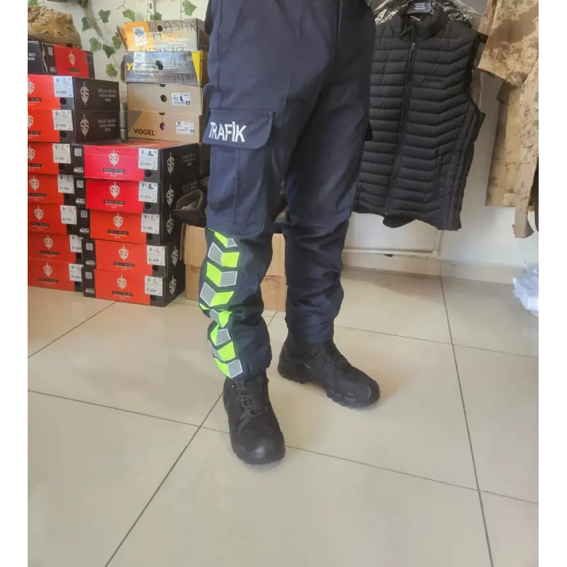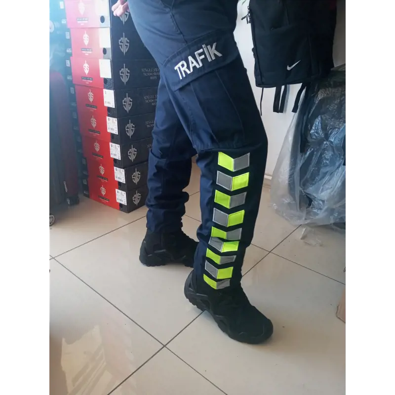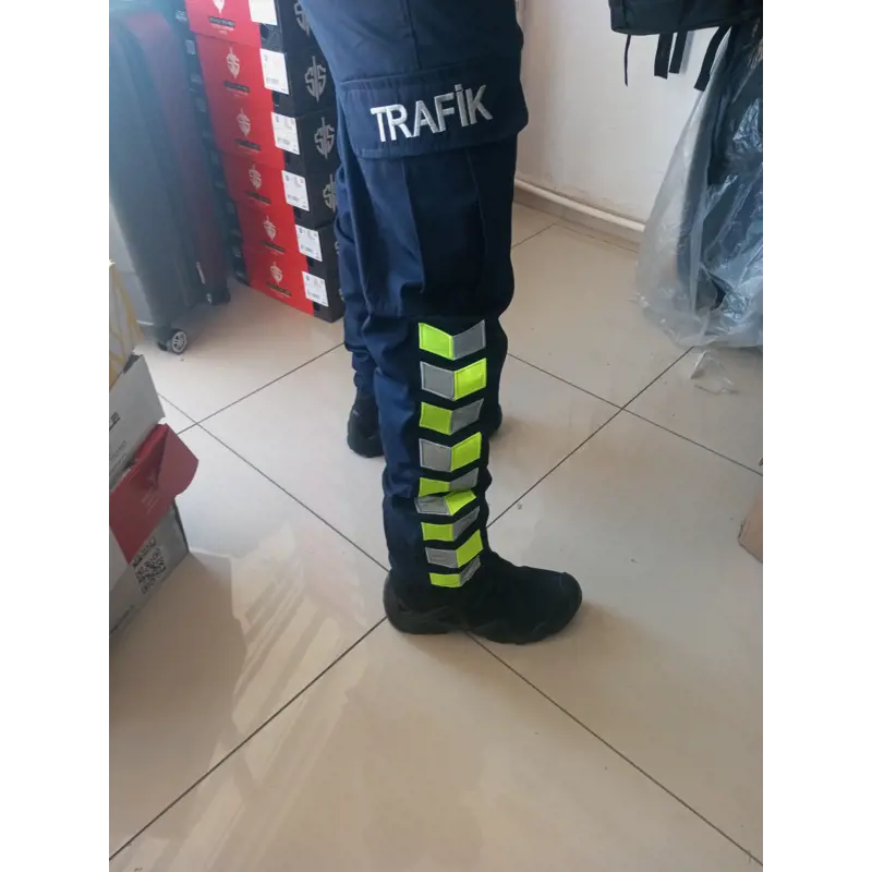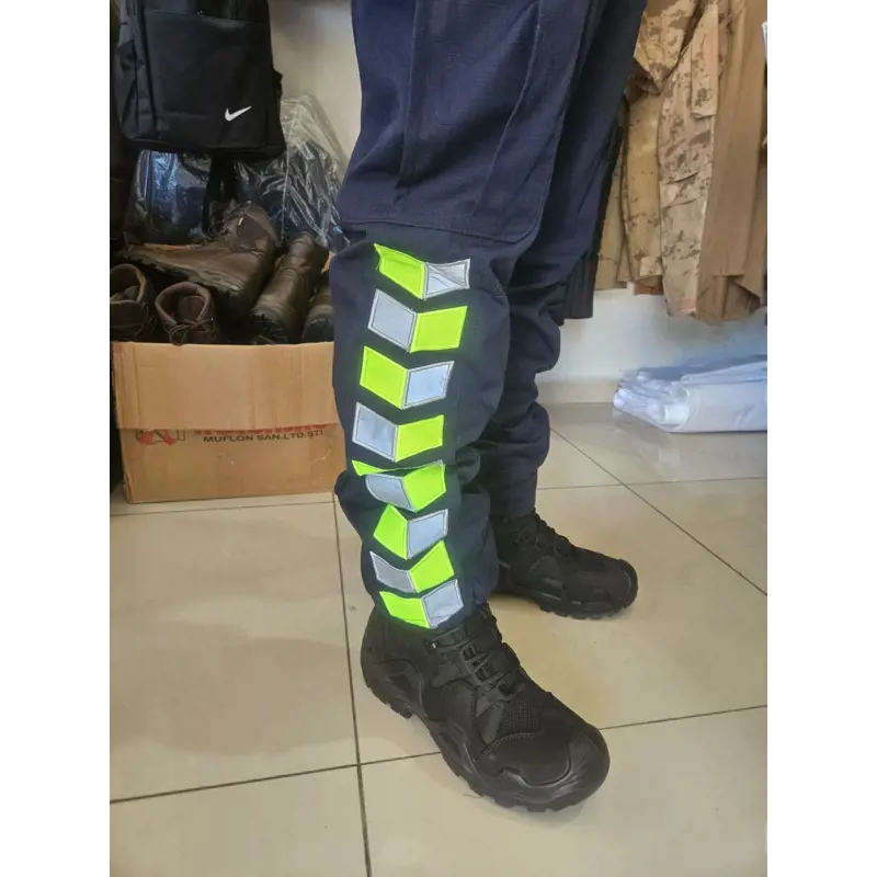 Paçalarda bulunan parlak fosforlu (neon sarı) ve gümüş reflektif şeritler, özellikle gece, şafak vakti ve kötü hava koşullarında personelin fark edilmesini sağlar. Bu, yol kenarı görevlerinde hayatı önem taşır.