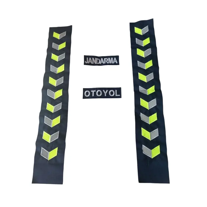 Mevcut nizami pantolonlarınıza kendiniz dikmek veya bir terziye diktirmek üzere tasarlanmış, bir pantolon için gerekli olan sağ ve sol paça şeritleri ile "JANDARMA" ve "OTOYOL" yazılarından oluşan Reflektörlü şerit set
